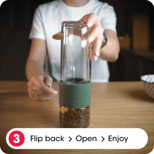 The infuser simplifies the brewing process. Just add your favorite tea blend to the glass lid, pour hot water into the insulated double-wall glass bottle, and twist and seal them together. The hot water filters through the stainless steel mesh strainer, creating your perfect brew.